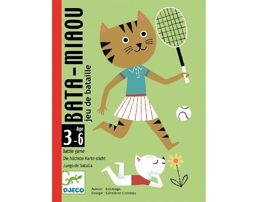 Přebíjená pro nejmenší děti s motivem koček - na první pohled je jasné, která kočka je větší - vršek kartičky je vždycky zcela bílý. I sotva odrostlá batolata tak poznají, která karta vyhrává - samozřejmě je to ta s větší kočičkou! Pro milovníky psů vymysleli tvůrci z Djeca hru na stejném principu s názvem Bata-waf, kde jsou samí bafani. |