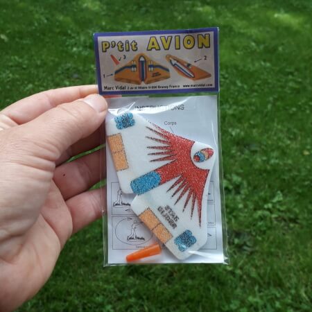 Malé polystyrenové letadlo, rozpětí křídel 9 cm. Letadlo je jednoduché na sestavení: v těle letadla je spára, kam vsunete křídlo, a na čumák mu dáte oranžovou plastovou špičku.