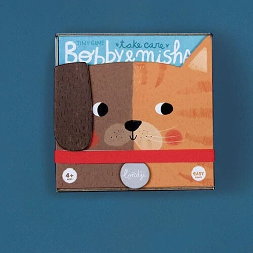 Bobby je pejsek a Misha je kočička. Dokážeš se o ně správně postarat? Otáčej karty, hledej správné žetonky a pomáhej svému zvířátku. Hra na paměť pro 2 hráče od 4 let. Vyhrává ten, jehož mazlíček je jako první šťastný. Materiál je tvrdý karton, hra je ideální na cesty, vejde se vám do kapsy! Měří 11 x 11 cm. |