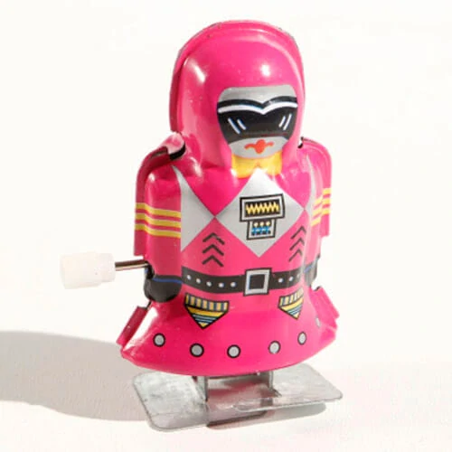 | Plechová robotí holka na klíček, vysoká 7 cm. Po natočení chodí (opravdu střídá nohy :-)) Z bezpečnostních důvodů není deklarovaná jako hračka, ale jako sběratelský výrobek, nevhodný pro děti do 14ti let, má ostré plechové hrany |