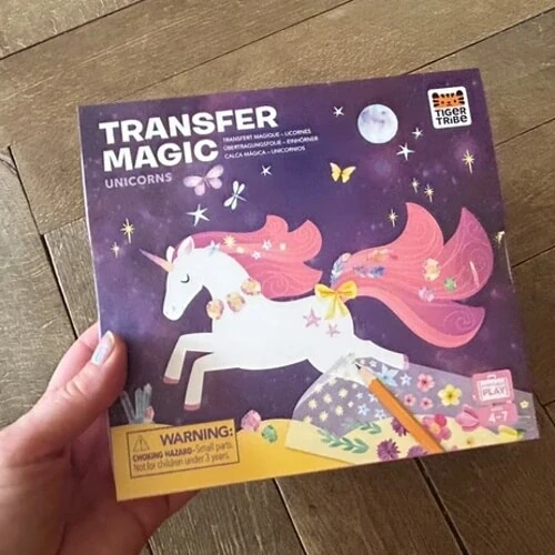 Super aktivita, která se bude dětem líbit! V krabičce najdete 5 obrázků jednorožců, a čtyři plata s kytičkami, srdíčky, mašličkami, hvězdičkami, a vším možným, čím můžete svoje jednorožce dozdobit. Na jednorožce přiložíte třeba mašličku, kterou má mít na kru, přečmáráte ji tužkou, a ona se vám tam objeví! Tužka je součástí sady. Australská značka Tiger Tribe - novinka na trhu. |
