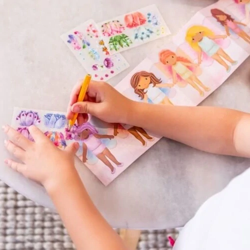 Super aktivita, která se vám vejde do kapsy. V krabičce najdete rozkládací scenérii, kde je celkem 8 holčiček (nebo jsou to víly?), tři plata s doplňky (sukýnky a korunky) a tužku. Na holčičku přiložíte sukénku (nebo korunku), kterou chcete holčičce obléct, a přečmáráte ji tužkou, a on se vám tam objeví! Australská značka Tiger Tribe - novinka na trhu. |