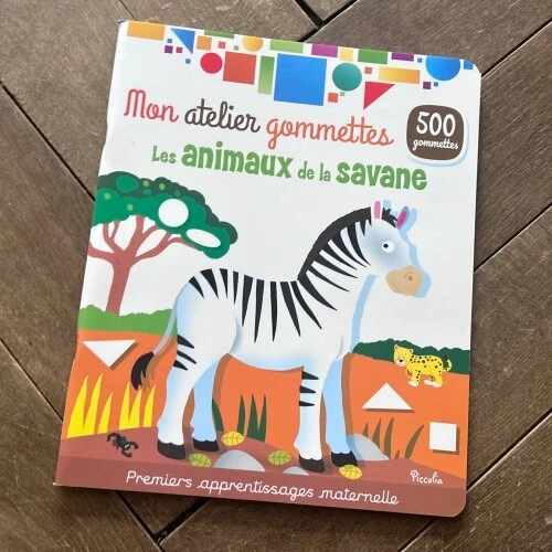 Sešit se spoustou samolepek různých tvarů (obdelníky, trojuhelníky, kruhy, ovály, atd.), které lepíte na stránky - celý sešit je zaměřený na zvířátka, která můžete potkat v savaně. Francouzský výrobce. Super na cesty - do letadla, do restaurace. |